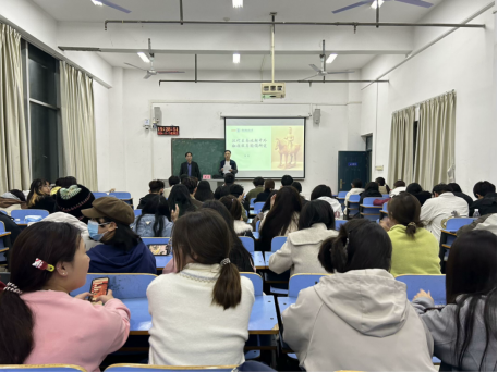 讲座伊始,詹教授围绕汉代至南北朝中外文化交流,从班服相关问题入手,深入探讨其起源与流行,指出班服虽为中国固有,但流行受域外因素影响,引导同学们以学术视角回顾历史、观察生活,培养做学问的意识。