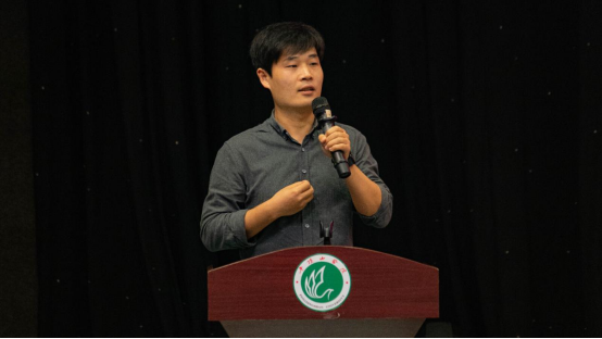 刘艳兵老师作为教师代表进行发言,他鼓励同学们珍惜大学时光,全面发展自我,勇敢迎接每一个挑战,让大学生活成为人生旅途中一段难忘而辉煌的篇章。