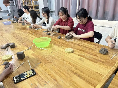 活动伊始,同学们在工作人员的指导下,深入了解了泥塑制作的基本流程和技巧,同时也通过心理健康培训,对如何调节情绪、缓解压力有了更深刻的认识。在制作泥塑作品的过程中,同学们充分发挥了自己的创意和想象力,制作出了各具特色的泥塑作品,不仅锻炼了动手能力,也提升了审美水平。最后,工作人员引导同学们深入参观了陶瓷实训工厂,详尽地展示了陶瓷制作的工艺流程,令同学们大开眼界。